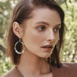 Natural semi-precious gemstones lend a painterly palette to these colorful French wire earrings, finished with tiny Contempo silver beads. Because we have used natural materials, each stone is truly one of a kind and may have variations in color.