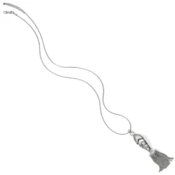 This sleek, shimmering fish silhouette is fully articulated with movable links. Its tail transitions into an elegant tassel made up of multiple strands of serpentine chain, giving the appearance that it is moving through the ocean. This contemporary two-tone fish features a little wiggling tail, lending a playfulness to your look.