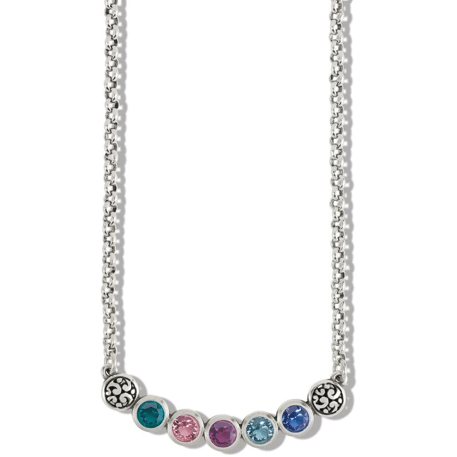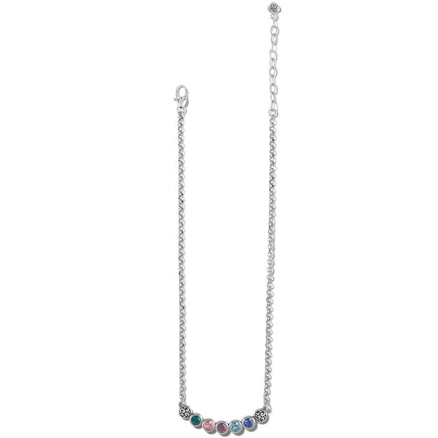 Pointillism – the technique of small, distinct dots of color that was invented by the French painter Georges Seurat – inspired this necklace with 7 shades of translucent hand-set crystals alternating with pierced silver scrolls. It creates a harmony of color and form that complements any clothing hues.