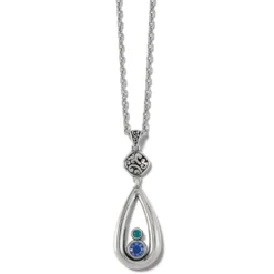 Pointillism – the technique of small, distinct dots of color that was invented by the French painter Georges Seurat – inspired this necklace with translucent hand-set crystals and pierced silver scrolls. It creates a harmony of color and form that complements any clothing hues.