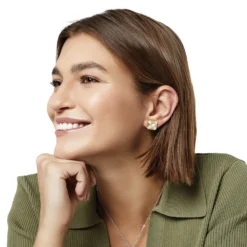A smooth silver X design against hand-hammered gold gives these petite square-shaped earrings their own strong statement.