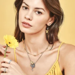 Give your look a gorgeous garden effect with this two-tone necklace with petal-like butterflies.