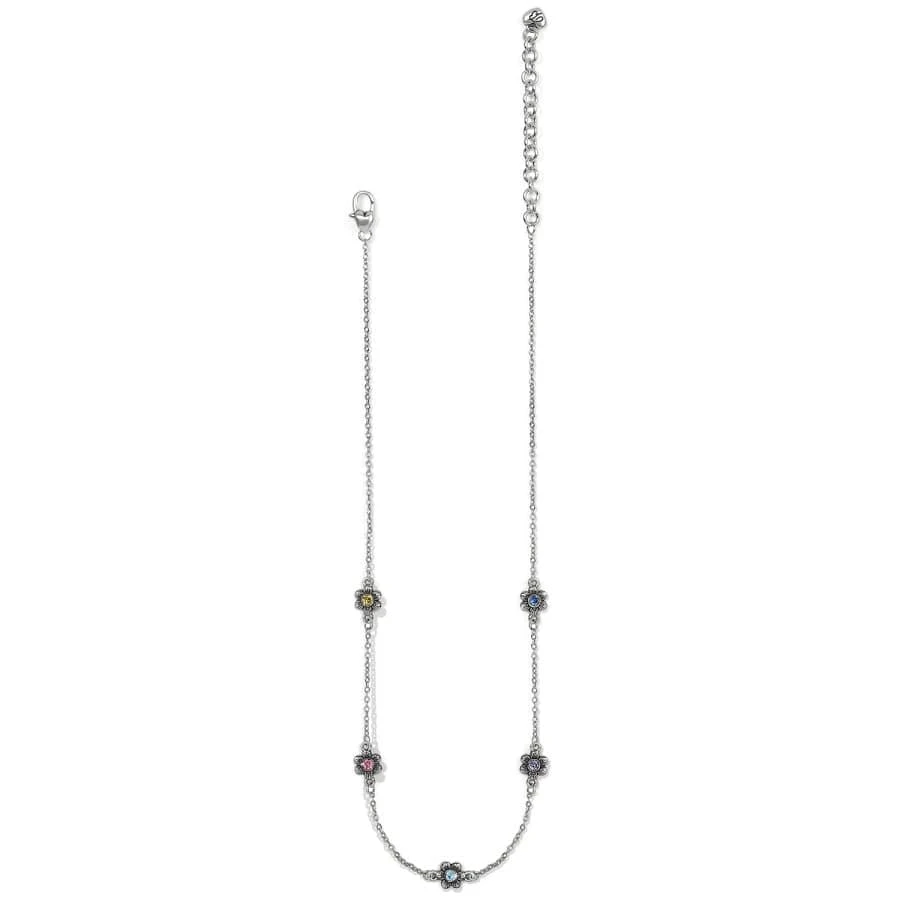 We believe that great art picks up where nature ends. Celebrating colors found in flowers, this semi-precious stone necklace with sculpted silver blossoms is as pretty as springtime itself.