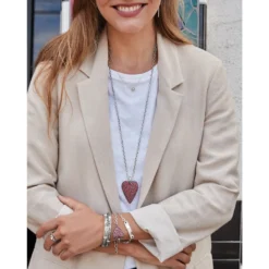 The elongated heart with glistening details is great for wearing solo or stacking, for special occasions or every day.