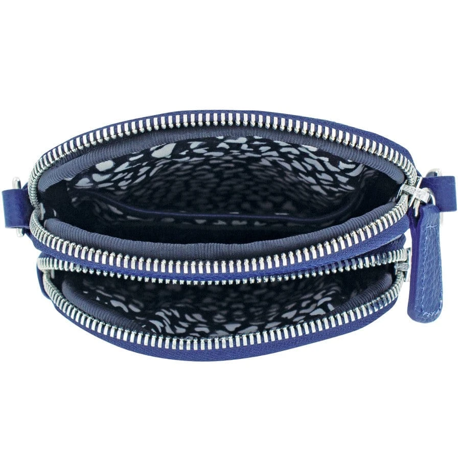 In wonderful shades of blue, highlighted with Italian navy blue leather, this great compact crossbody will match every pair of denim jeans you own, and compliment every other color in your closet.