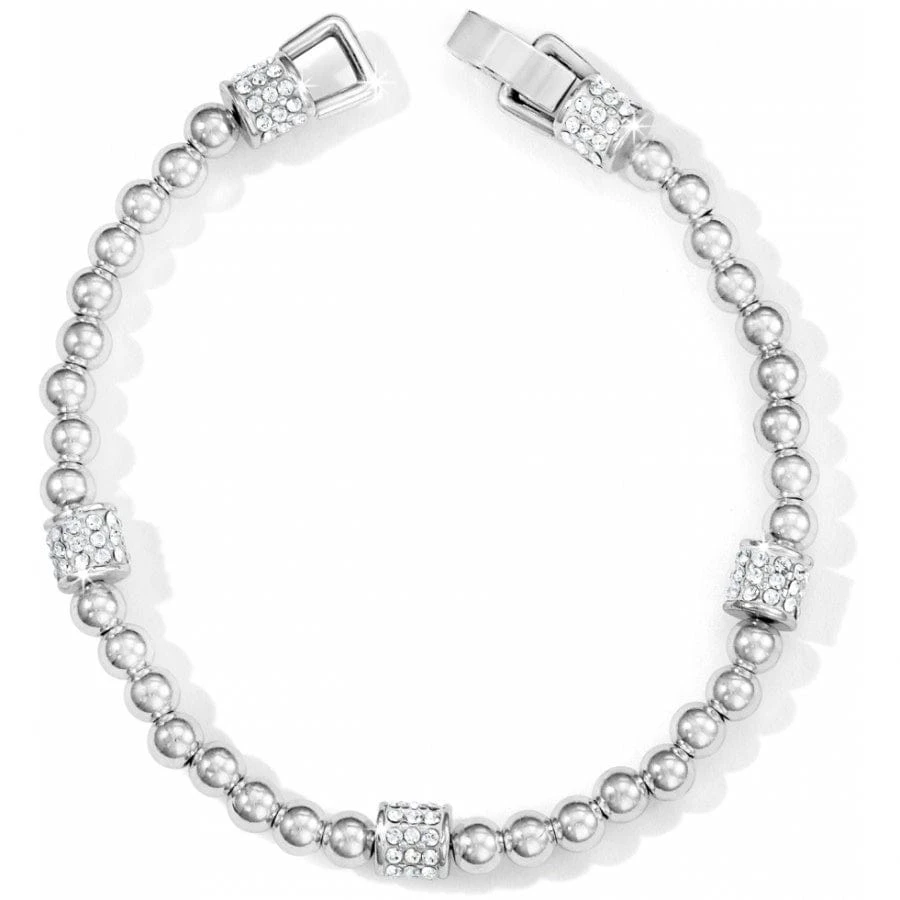 Dainty silver beads are punctuated by stations of fine quality crystal-embellished crystals. Great alone or layered, this piece looks like fine jewelry.
