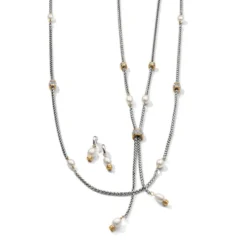 The trending Y-necklace shape gives a modern look to this timeless pearl and two-tone necklace.