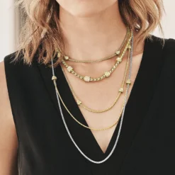 This tiered beauty looks like two necklaces and the mixed metals make it perfect to wear with silver or gold, or both.
