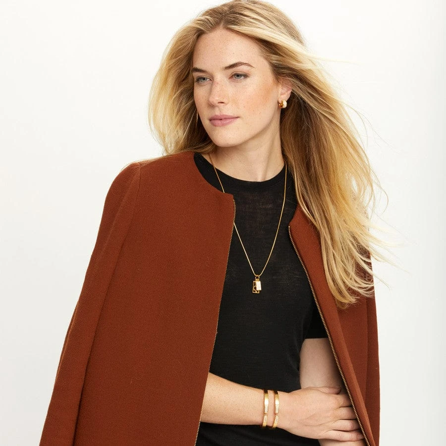Our popular Meridian Collection barrel silhouette is unrolled and geometrically updated on this hammered hinged bangle. It’s the very zenith of contemporary chic, and great for stacking.