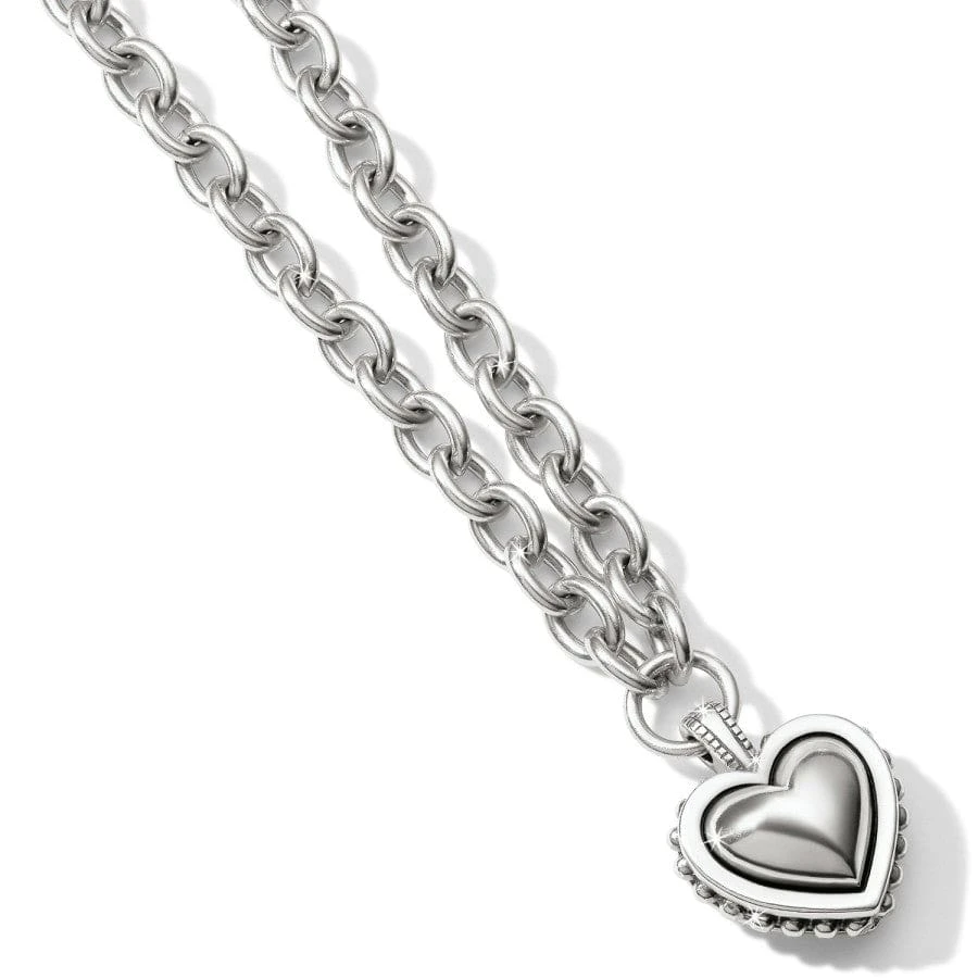 Whenever you want to exude urban elegance, reach for this silver studded heart necklace which channels the limelight of Hollywood and New York City in the 1980s and early 90s – a truly modern classic with the look of silversmithing.