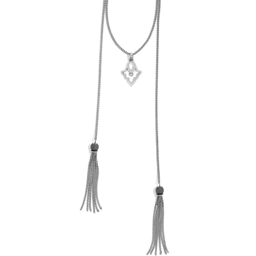 Named for Princess Salma of Morocco, this collection is a modern interpretation of centuries-old details found in traditional Moroccan art. This pendant’s shape echoes the Hamsa, a symbol of protection and good luck. Its lariat chain is finished with on-trend tassels.