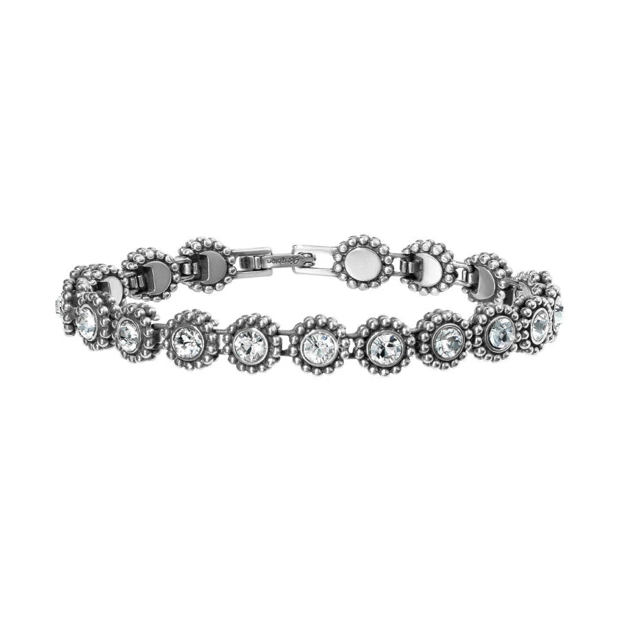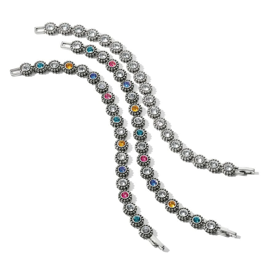 Balinese silver granulation frames shimmering hand-set colorful crystals for a look that complements jeans and white shirts to little black dresses.