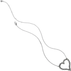 Within a delicately floral motif, fine quality crystals outline this lacy heart for an ultra feminine look.