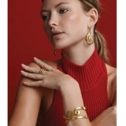 Golden swirled silhouettes in a brushed finish make these sculptural earrings the perfect finish touch that transforms the simplest outfits.