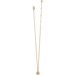 Crystal droplets catch the sun and shine on this gold shell pendant necklace. It adds a warm touch to your coastal-inspired look this spring through summer..